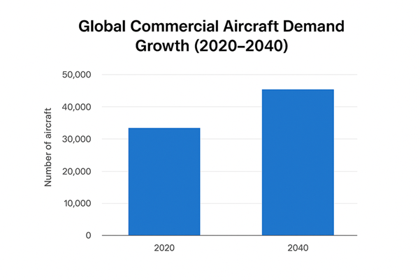 Commercial aircraft demand is expected to grow 3–5% annually through 2040, while the industry races toward net-zero emissions by 2050 (IATA, 2023). At the same time, digital technologies—MBSE, digital twins, predictive analytics, and AI—are enabling faster development cycles and new operating models.